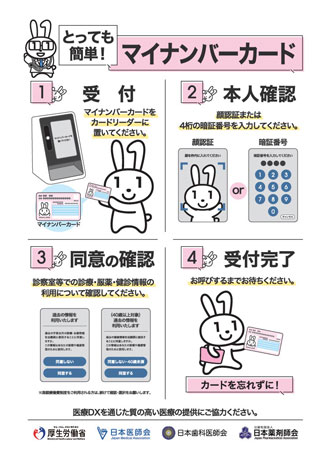 受診毎にマイナ保険証の読み取りをお願いいたします。保険に変更がある場合は反映されていない可能性もあるため、受信時にお申し出下さい。