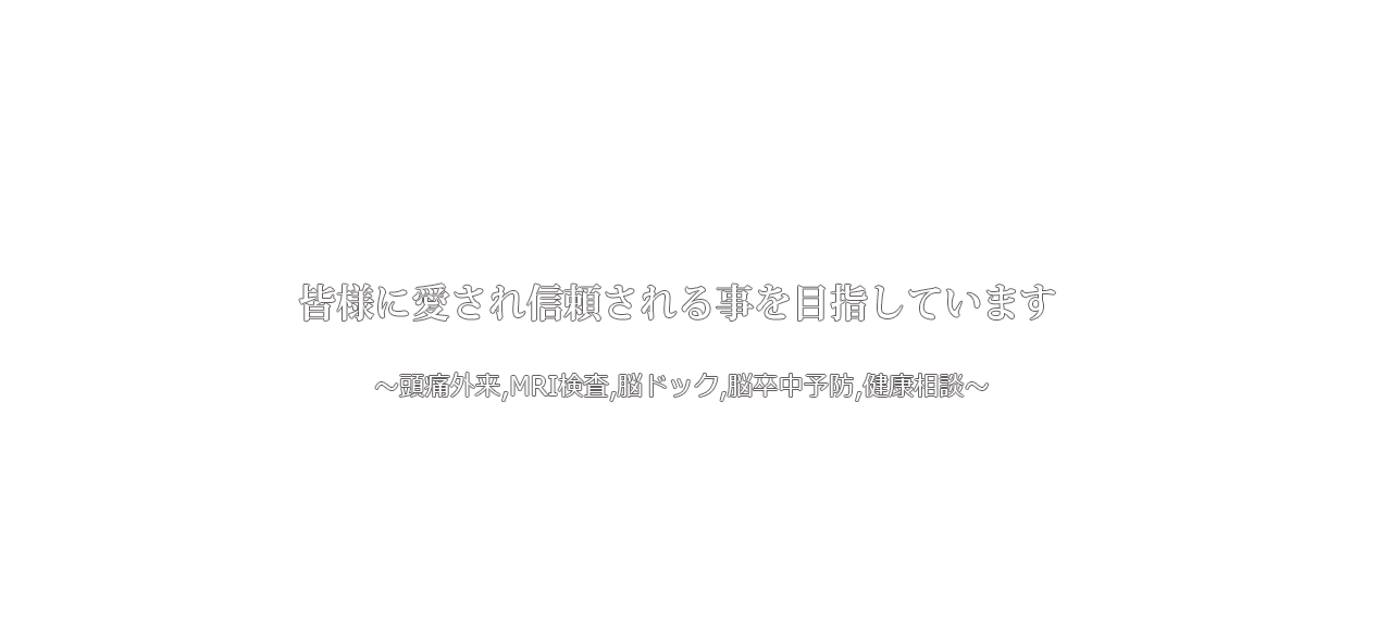 当院では頭痛、めまい、しびれ、麻痺などの症状をはじめ、言語障害、もの忘れ、頭のけが、脳卒中予防のための健康相談・生活習慣病の診療、MRI検査など広く診療いたしております。